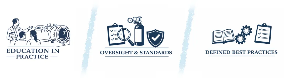 Our commitment to best practices and rigorous safety protocols aims to safeguard patients and uphold the integrity of the field Hyperbaric Medicine. We strive to support healthcare providers through education, advocacy, and the continuous improvement of treatment standards, ensuring that hyperbaric therapy remains a safe, effective, and trusted medical practice.
